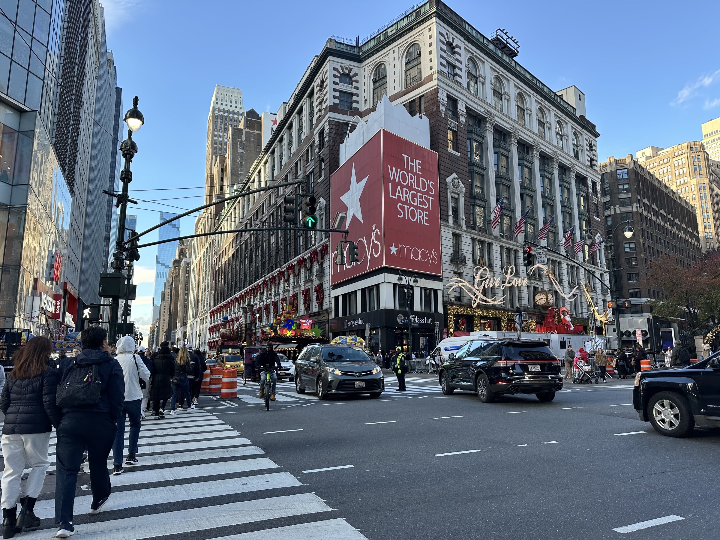 I don’t tire of NYC, this hyper stimulation, hustle bustle city. I mean, how could you, especially during the holidays when everything is festive and over the top? Sitting here is the best place to people-watch and eavesdrop conversations, like I’m doing right now. Next to me, a couple of early 20-somethings are chatting about holiday plans, spicing up their discussion with plentiful F-bombs. Most pedestrians are wearing black overcoats, sneakers and have that New York don’t-mess-with-me scowl across their face. Those in colorful attire, particularly cheerful, hold yellow bags from the M&M store are obviously tourists, like me.